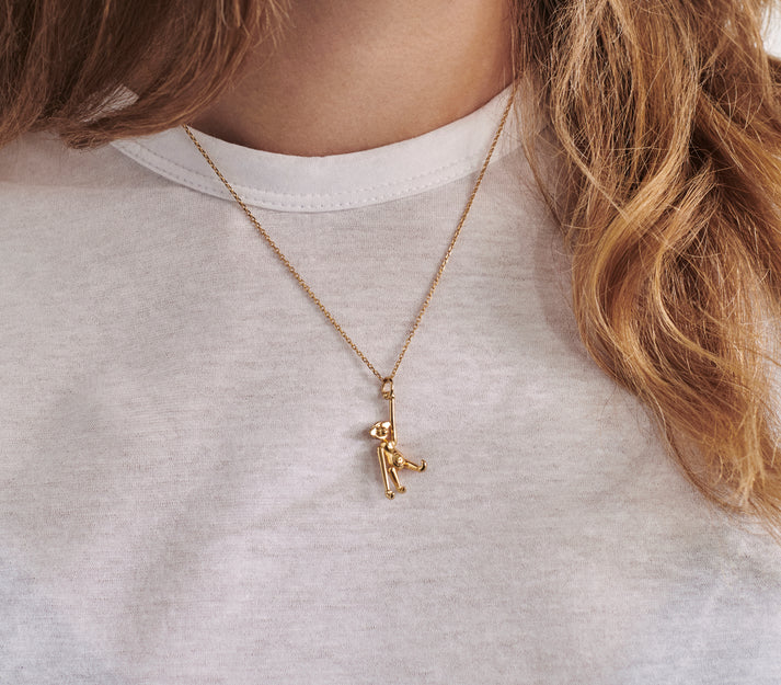Abevedhænget er fremstillet i 9K massiv guld, hvilket giver smykket en eksklusiv og tidløs karakter. Hvert vedhæng er skabt med omhu og under strenge kvalitetskrav for at sikre både holdbarhed og en perfekt udførelse. Designet er tro mod Kay Bojesens ikoniske abe og fremstår som en sofistikeret fortolkning af et dansk designikon.