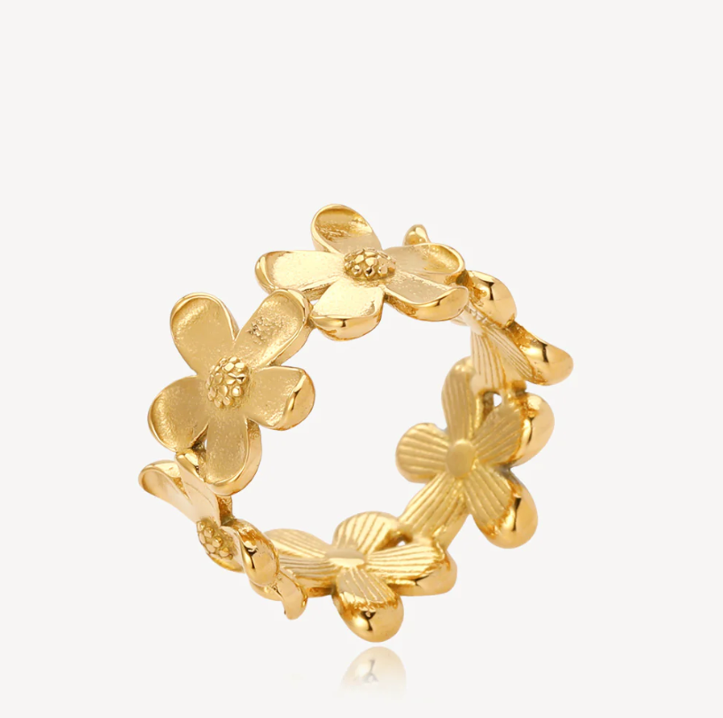 Camellia - Fingerring 18kt. Guldbelagt stål