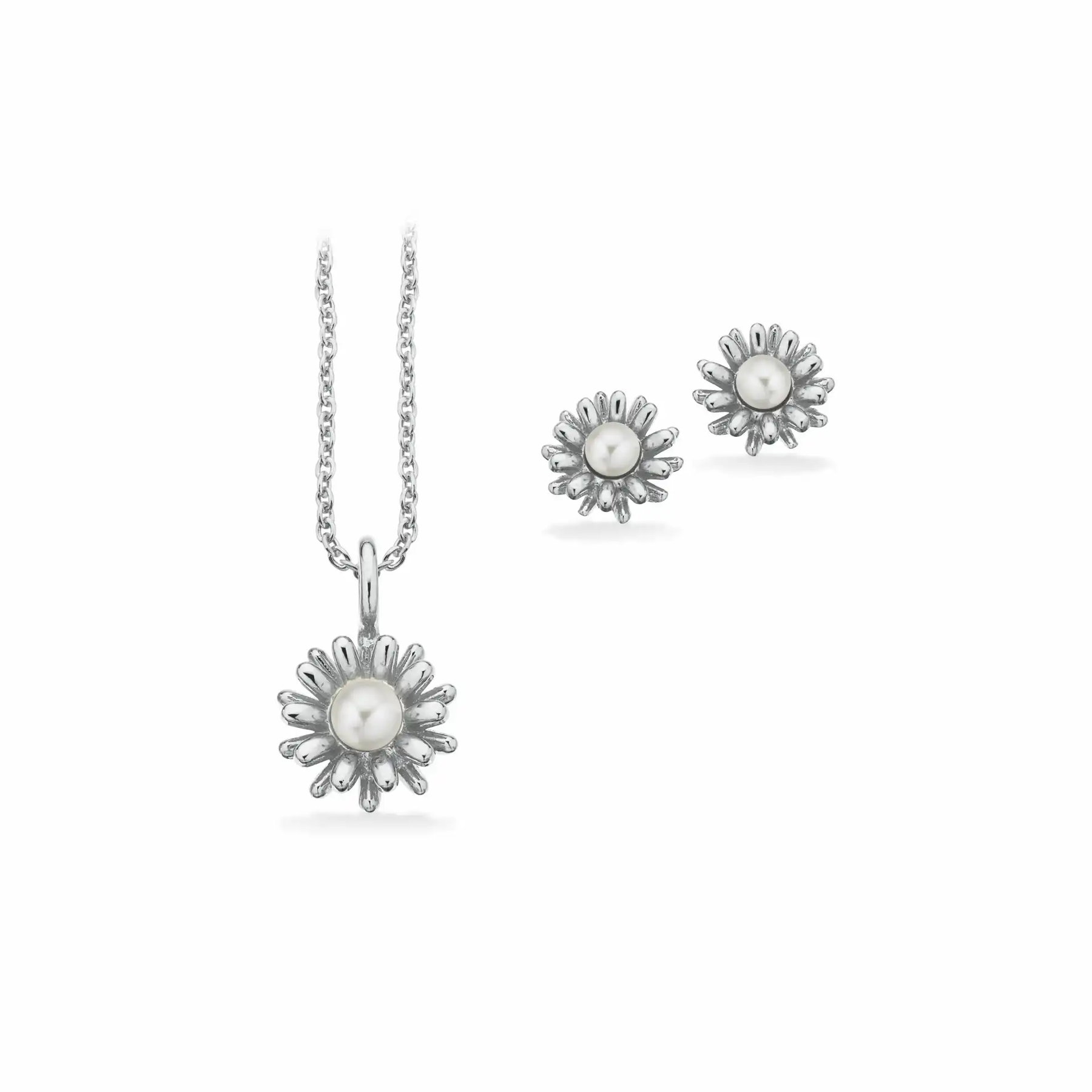 Normalpris 395,00 krSmykkesæt formede som en blomst med en perle.