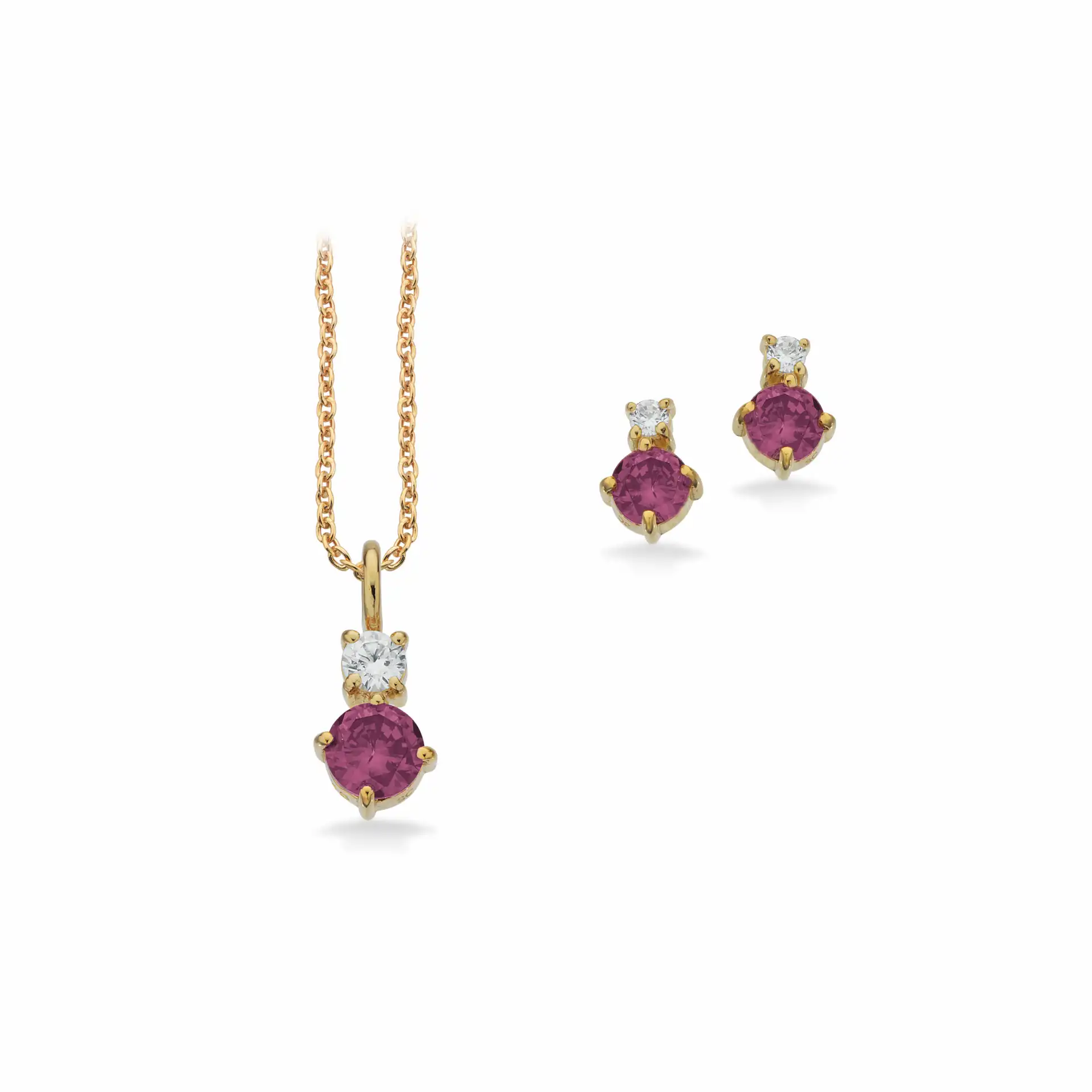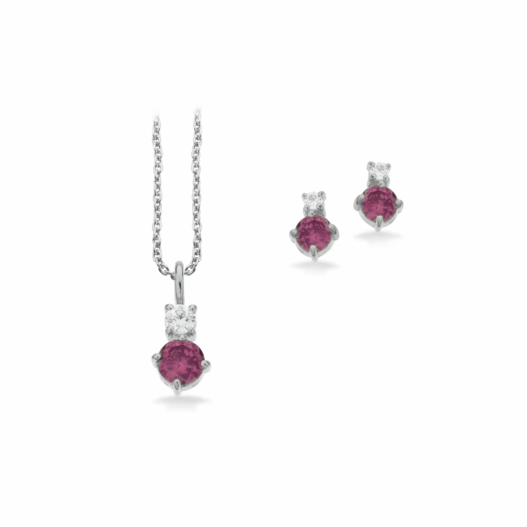 Normalpris 395,00 krSmykkesæt med hvid og lilla zirkonia sten.