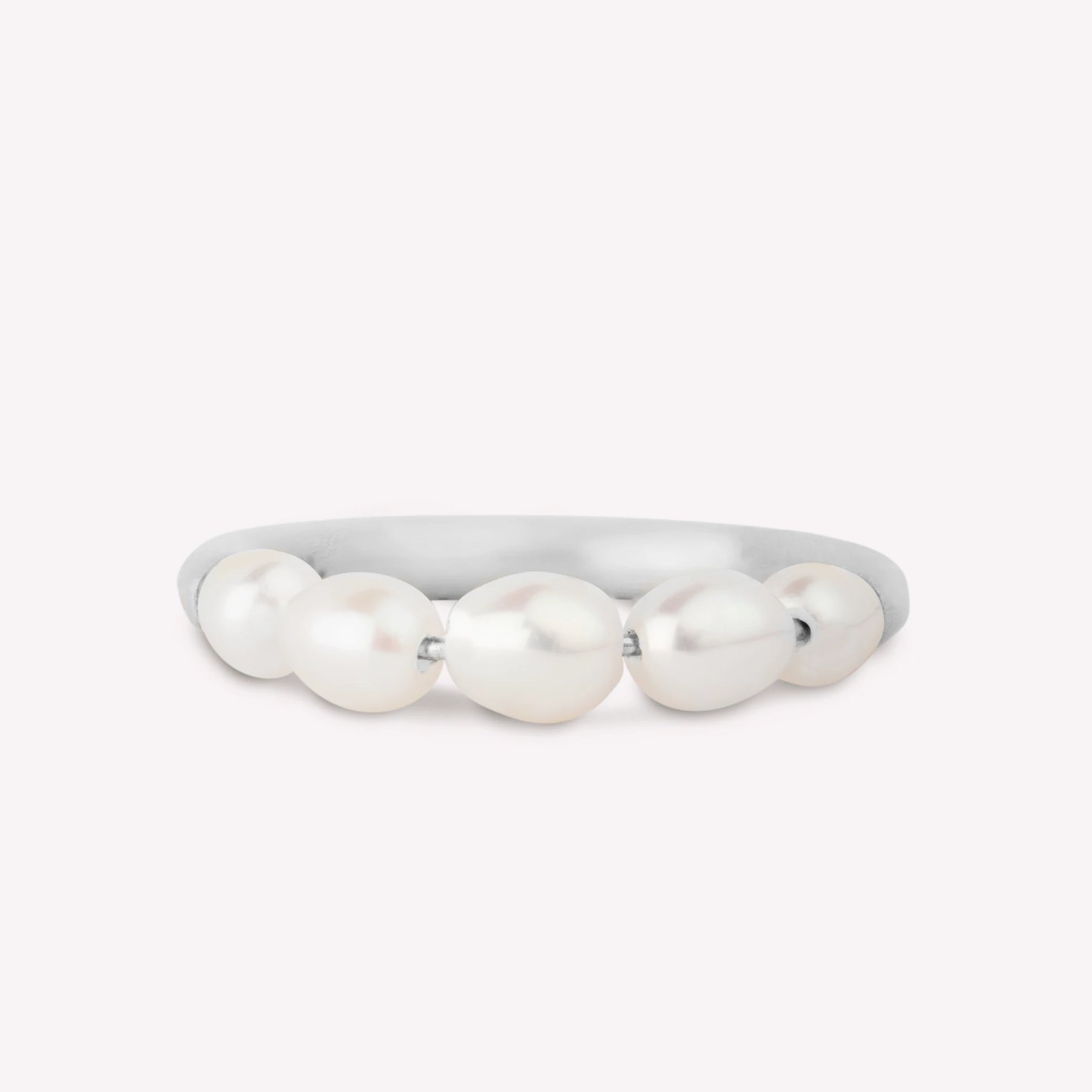 Aura ring med ferskvandsperle. Ringen er lavet i mat sterling sølv.