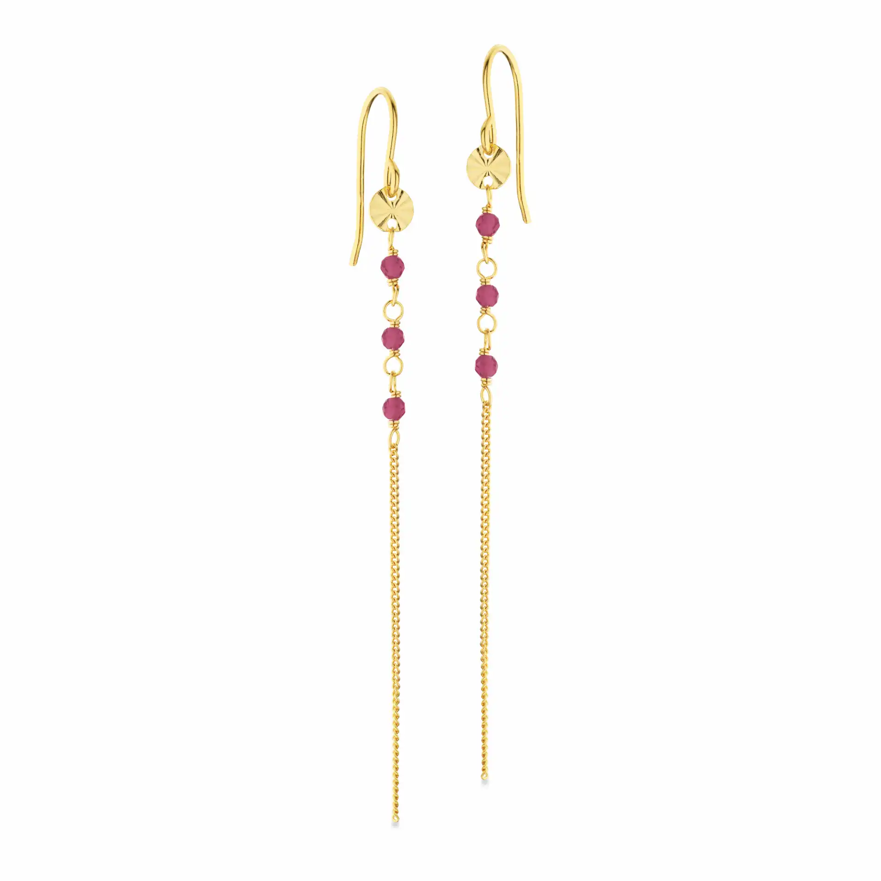 Normalpris 395,00 krØrebøjler i 24 kt. forgyldt sterling sølv med røde zirkonia sten