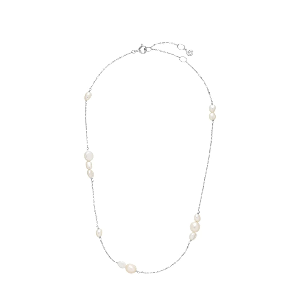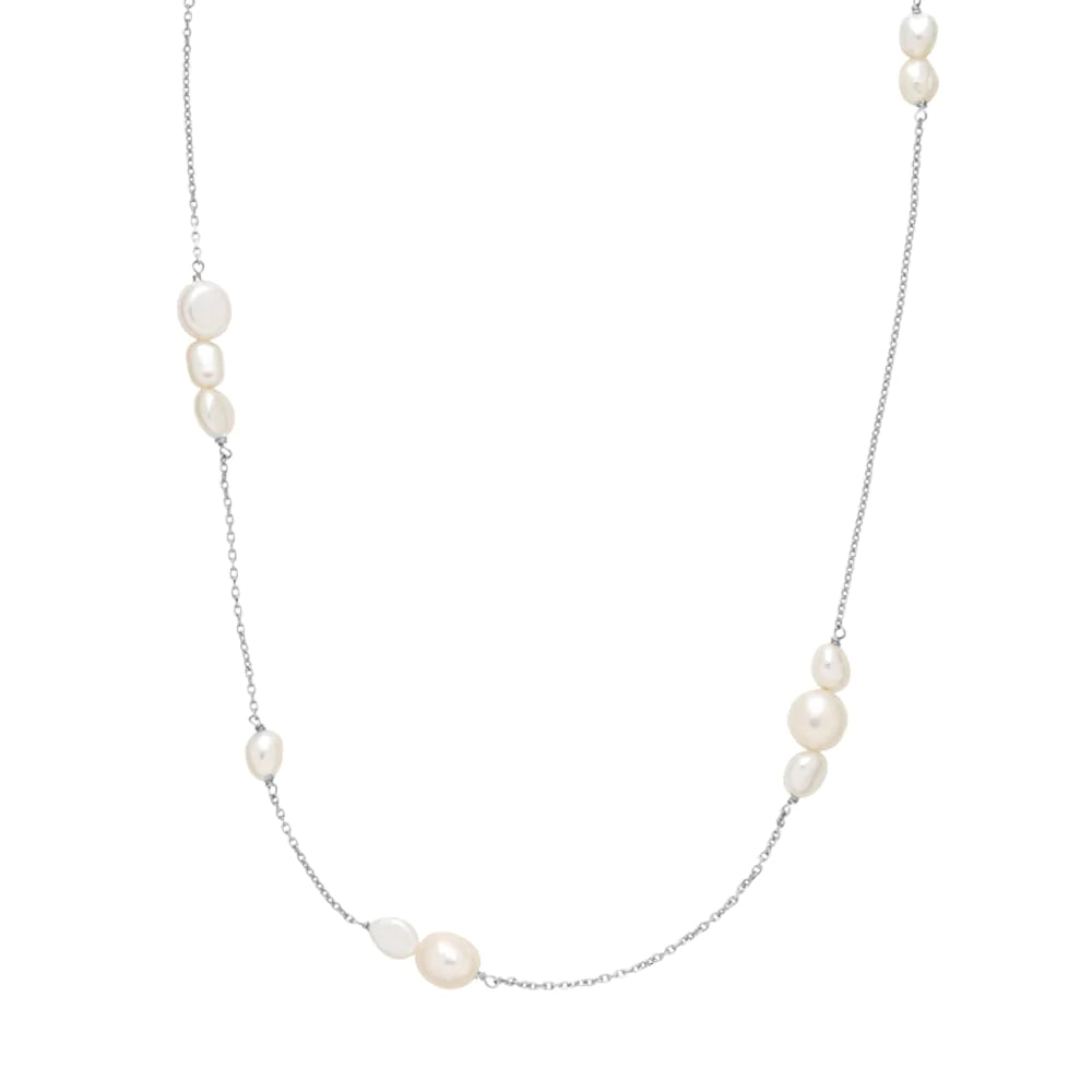 Normalpris 795,00 krVi har givet den klassiske perlehalskæde et twist, pillet nogle perler ud og skabt en smuk, trendy men samtidig elegant halskæde. Halskæden er fremstillet i rhodiumbelagt genbrugssølv med små fine unikke barokperler.